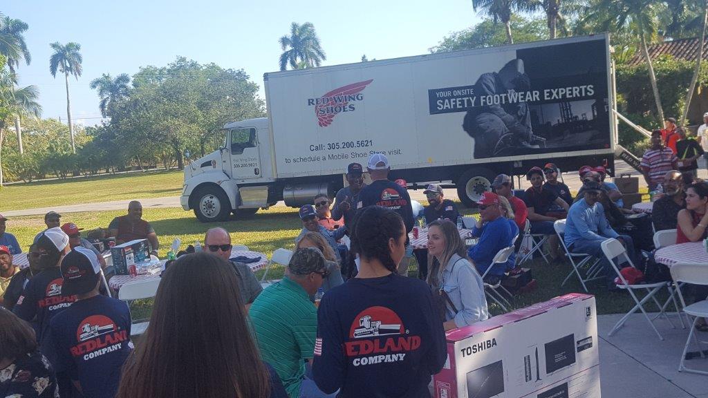 Redland ended 2017 with another annual Employee BBQ event in Florida. The Red Wing Boots truck was on hand to give a new pair of boots to every employee. New shirts and hats for all. Drawings for free TV’s, Yeti coolers, and lots of other fun stuff. Great Ribs, Chicken, and Lechon Asado (thanks Jim, Bill, Nathan, Sean, Annette, Tommy, Jack, Douglas, and several others for all the cooking, prep, and cleanup!).